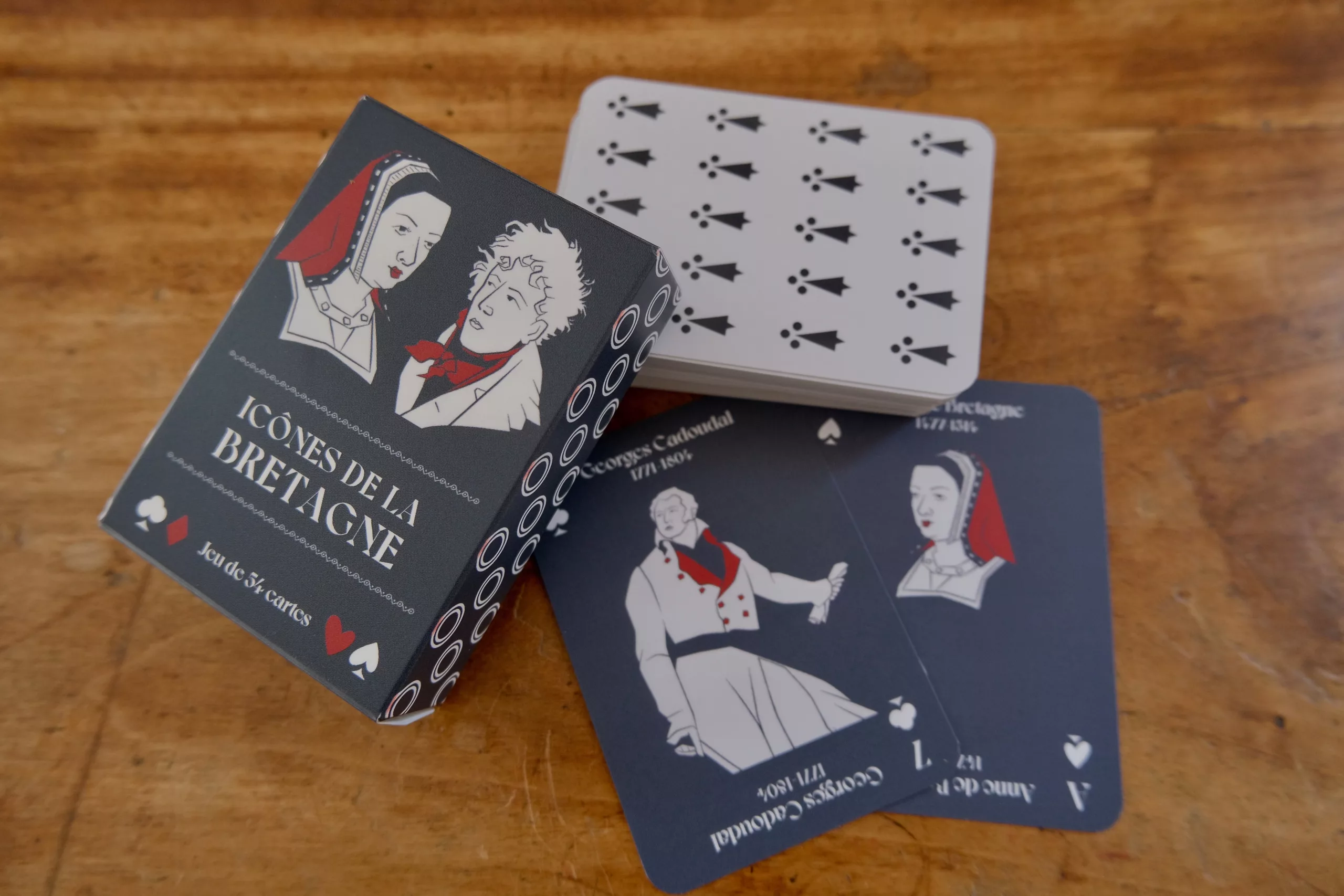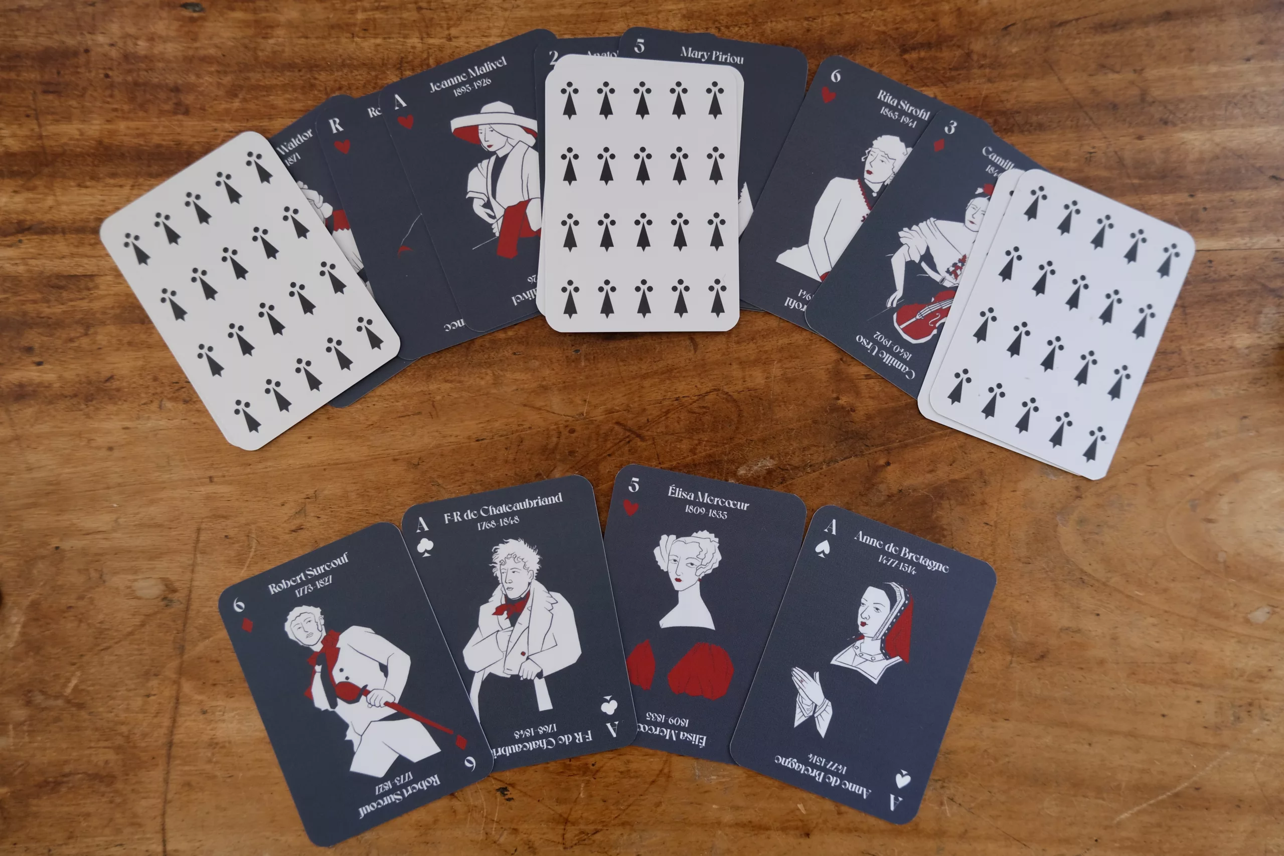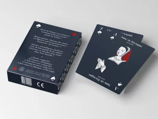 Envie de donner un caractère résolument breton à votre partie de poker ? Bonne pioche ! Chacune des cartes est illustrée par le portrait d’un(e) Breton(ne) emblématique ! Artistes, duchesses, scientifiques, ils font partie du panthéon breton et ont plus d’un atout dans leur manche