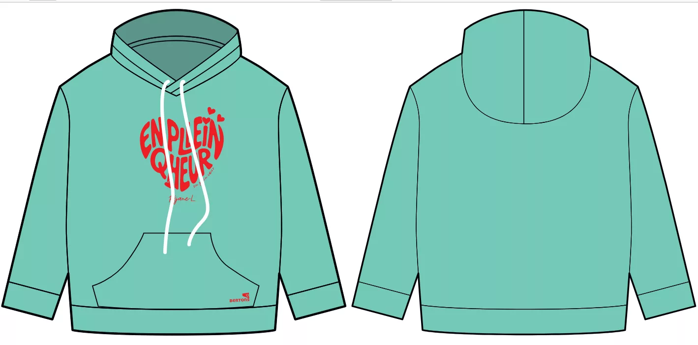 Motif dans le dos et sur la manche. Logo Bertons imprimé sur la poche.